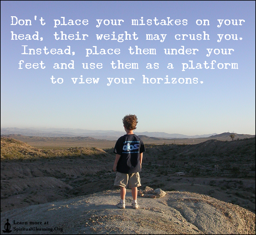 Don’t place your mistakes on your head, their weight may crush you. Instead, place them under your feet and use them as a platform to view your horizons.